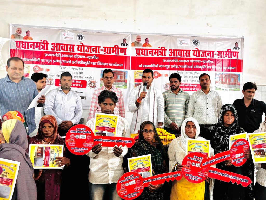 विकासखंड छाता पर मंत्री प्रतिनिधि नरदेव चौधरी ने लाभार्थियों को प्रधानमंत्री आवास योजना 2024 के तहत स्वीकृत पत्र सौपे।