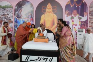 इससे पूर्व अथर्ववेद में गौ सूक्त को समझाते हुए बापू ने कहा कि गौमाता हमारे आंगन में कल्याण की स्थापना करती है, हमारे गोष्ठ में गौमाता के रंभाने की ध्वनि हो ऐसी ऋषियों ने प्रार्थना की है। साथ ही गौवंश बड़े और ऊषाकाल में गौ दुग्ध मिले ऐसी प्रार्थना की गई है। बापू ने आगे कहा कि माता के पांच स्वरूप हैं गौरी, गीता, गायत्री, गंगा और गौ। माता के इन पंच स्वरूपों की कृपा से हमारा धन लक्ष्मी बन जाता है, हमारी पूजा सेवा हो जाती है, हमारा शरीर भोगी से योगी हो जाता है, लोक की यात्रा सफल हो जाती है, हमारा धर्म शक्तिवान हो जाता है जिस पर आसुरी प्रभाव नहीं पड़ता, स्वर्ग जमीन पर आ जाता है। ऋषियों का तप सफल होता है और पूर्वजों का कल्याण हो जाता है।