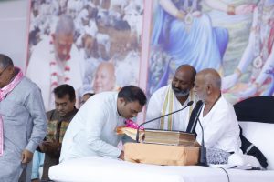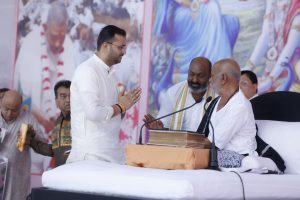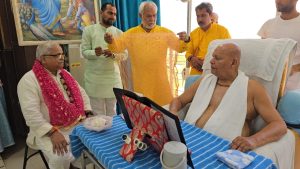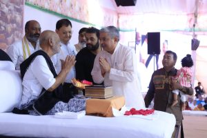 अलवर तिजारा के विधायक बालकनाथ,मुरारी बापूसे आशीर्वाद लेते हुए