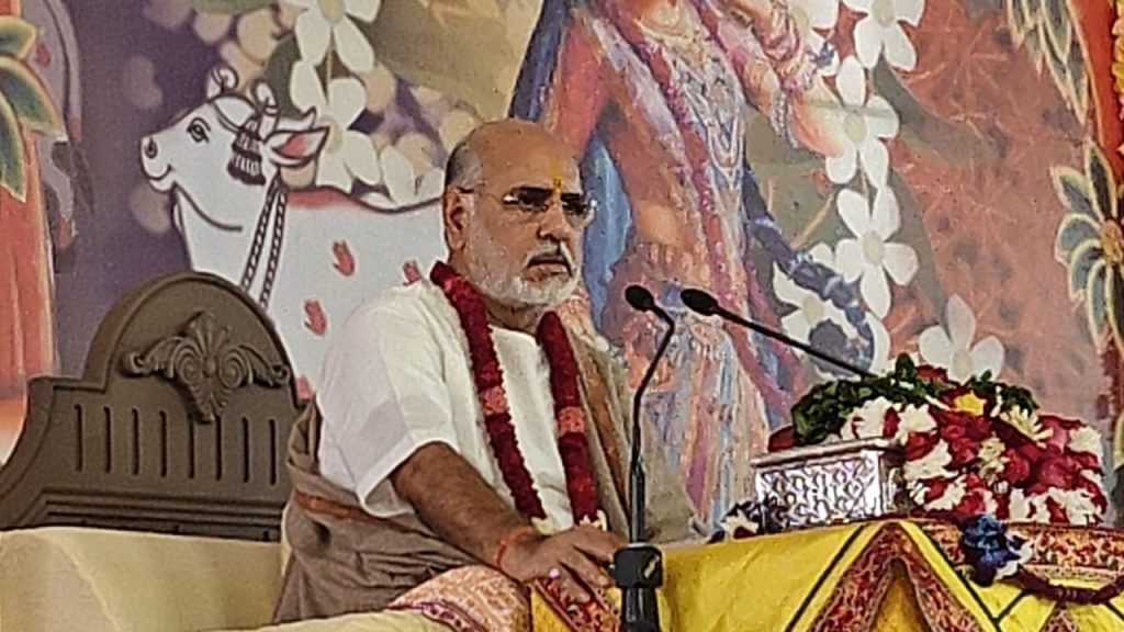 व्यासपीठ से रमेश भाई ओझा नें कहा कि जहाँ भागवत है, वहीं समस्त तीर्थों का वास है। भाई जी ने कहा कि “भागवत पुराण भले व्यास जी ने लिखी हो, पर उसकी स्याही राधारानी की कृपा ही है। ग्रंथ की प्रत्येक पंक्ति में श्यामसुंदर स्वयं नृत्य करते अनुभव होते हैं।” उन्होंने कहा कि जो कथा और कीर्तन सुनते-गाते हैं, वे सहज ही भगवान की शरण कृपा प्राप्त कर लेते हैं।