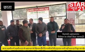 अधिवक्ता गणों का कहना है कि पूरी तहसील में कोई भी कार्य बिना रिश्वत के नहीं हो रहा है और रिश्वत का पैमाना में बहुत ऊँचा है जिसे पार करना हर किसी के बस में नहीं, जब star news21 की टीम ने जब तहसील दार छाता सचिन पंवार से इस बाबत बात करनी चाही तो उन्होंने कुछ भी कहने से इंकार कर दिया, जबकि धरना दे रहे वकीलों ने खुलेआम रिश्वत के आरोप लगाए धरना में वरिष्ठ अधिवक्ता हिरेंद्र सारस्वत,मुरारी लाल पचौरी, लेखराज शर्मा सतबीर सिंह, रियाज अली, आदि सैकड़ों अधिवक्ता मौजूद रहे देखिए पूरी रिपोर्ट।