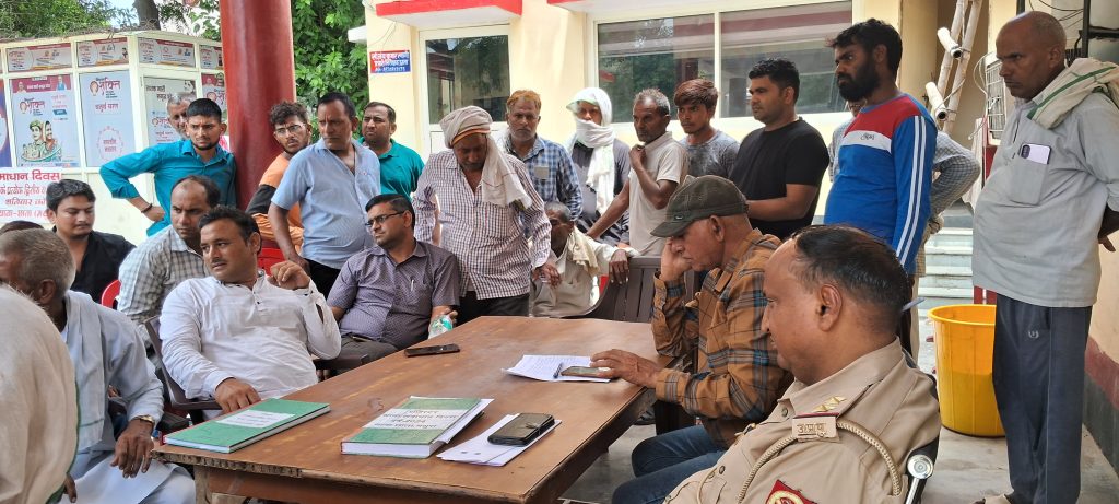 छाता,,,,,थाना छाता कोतवाली में आज शनिवार को थाना दिवस का आयोजन नायब तहसीलदार चेतन शर्मा की अध्यक्षता में किया गया, जिसमें कुल चार फरियादी शिकायत लेकर पहुंचे। इसी दौरान छाता तहसील मुख्यालय से लगभग छह किलोमीटर दूर के परेशान व गुस्साए ग्रामीण ट्रैक्टर ट्राली में सवार होकर अपने गांव बिलौठी से छाता पहुंचे। थाना छाता कोतवाली में चल रहे ,थाना दिवस में गांव में हो रहे अत्यधिक जल भराव , फसलों में भारी नुकसान को लेकर एक लिखित प्रार्थना पत्र थाना दिवस में अधिकारियों को दिया।